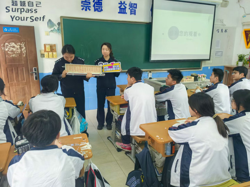 2025年3月27日星期四,我校高中部109 班迎来几位特殊的“老师”——辖区民警,他们为同学们带来了毒品安全教育和国家安全知识宣传活动。