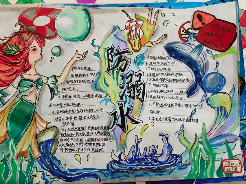 三是召开“珍爱生命 预防溺水”主题班会。各班组织学生观看防溺水安全专题教育视频,以惨痛的事例警示教育学生珍爱生命、远离溺水。各班利用班级展示栏开展防溺水主题手抄报专题活动,丰富学生的安全自护自救知识。