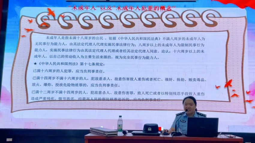 聚焦到预防未成年犯罪这一板块,警官结合真实案例着重介绍了两种常见的未成年犯罪类型,一是盗窃犯罪,部分未成年人因一时贪念,看到心仪的物品却没有正确的获取途径,便选择偷偷窃取他人财物;另一种是寻衅滋事犯罪,有些未成年人缺乏正确的情绪管理和法律意识,在与他人产生矛盾时,冲动之下通过打架斗殴等方式来 “解决” 问题,扰乱了社会秩序。