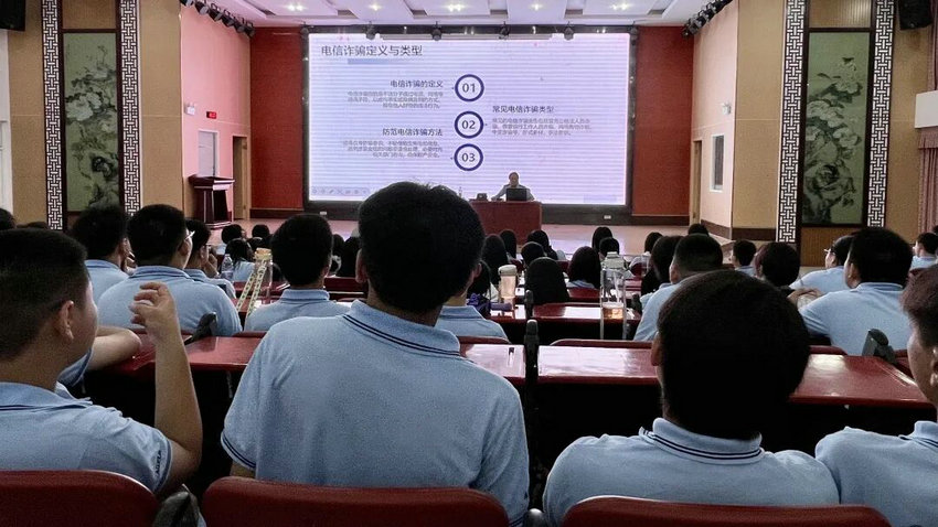 校园,是充满阳光、欢乐与知识的成长乐园,但是在现实生活中,校园霸凌、未成年人犯罪、电信诈骗以及毒品等问题,却如阴影般潜伏在周围,时刻威胁着同学们的身心健康和安全。为增强学生法制意识,培养学生知法、懂法、守法观念。9月2日晚,我校邀请了老峰镇派出所的葛警官在学校报告厅开设高一新生安全教育知识讲座,为学生成长保驾护航。