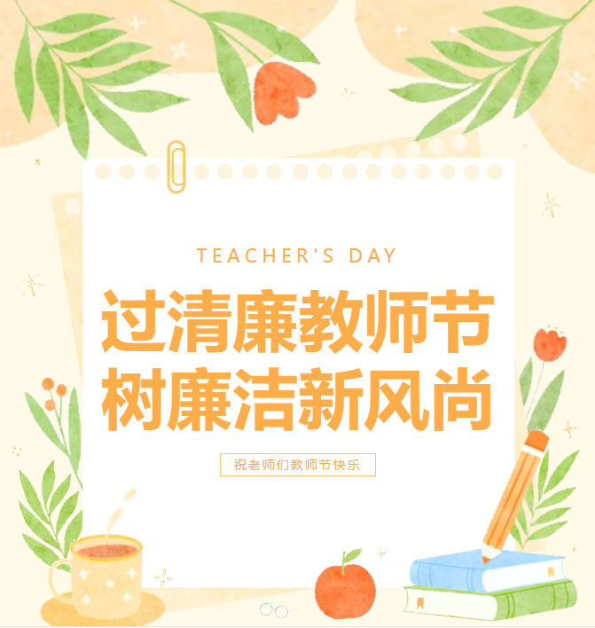 温馨提示尊敬的各位家长: 2025年教师节即将来临,我校一直倡导全体教师“过清廉教师节,树廉洁新风尚”,教师节当天,学校谢绝学生和家长的鲜花、礼品、礼金等一切馈赠进入校园,请您理解与配合!谢谢!