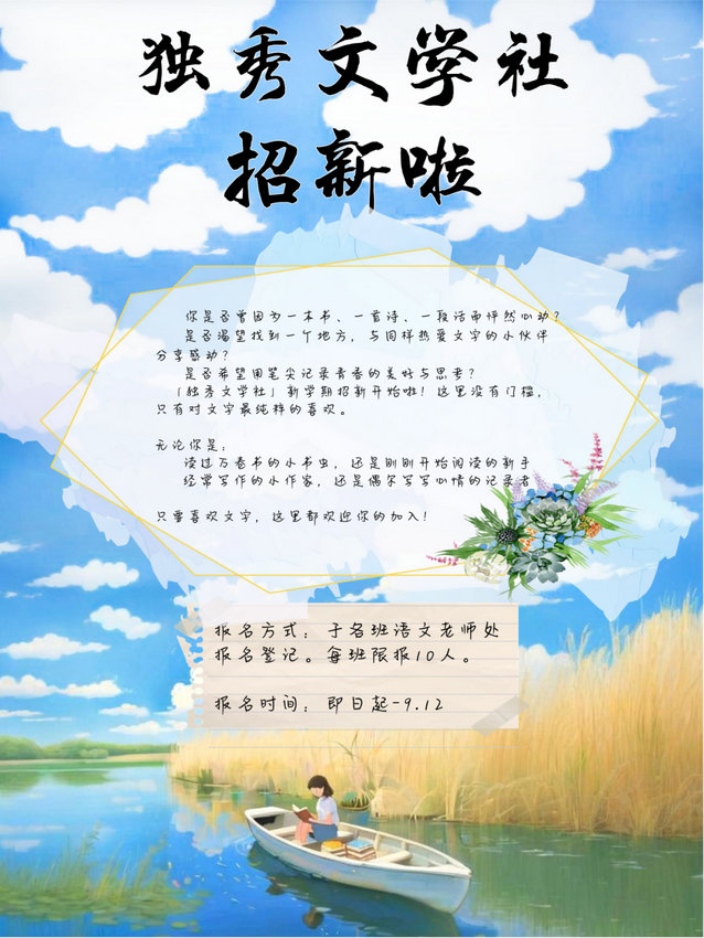 本次纳新大会不仅为文学社增添了新的活力,也为校园文学爱好者提供了一个交流思想、展示才华的平台。我们期待新成员的加入,能与独秀文学社一同执笔,书写更加精彩的青春故事。