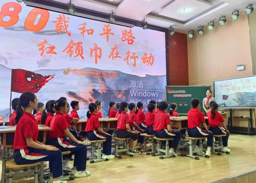 我校小学部查安琪老师为大家带来了一场别开生面的少先队队课——《八十载和平路,红领巾在行动》,查老师以语文教师兼班主任的双重视角,带领学生们在红色传承与家国情怀的浸润中,展现出安外学子的精神风貌,在小学部领导们的细致统筹下,让这堂队课成为德育工作的生动范例。