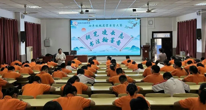 秋日午后,墨韵悠长。为引导学生养成良好的书写习惯,规范汉字书写,我校初中部西区在报告厅举办了七年级规范字书写比赛。