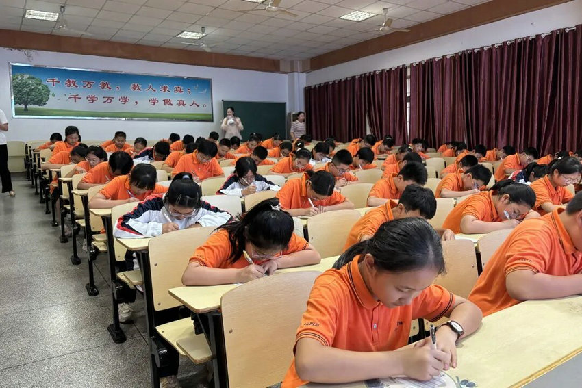 赛场之上,方寸格间,同学们凝神执笔。一点一横,规行矩步;一撇一捺,尽显功底。笔尖在纸面上沙沙作响,或遒劲有力,或清秀工整,无不流淌出汉字的结构之美。