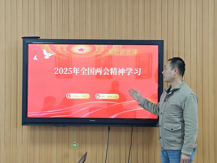3月20日下午,安庆市外国语学校党总支书记、副校长芦丹以“2025年全国两会精神学习”为主题,为党员教师带来一堂生动的专题党课。党课聚焦两会核心要义,结合基础教育实际,为学校教育高质量发展注入新动能。