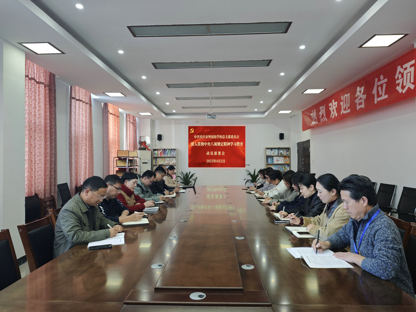 4月2日下午,我校党总支在行政楼一楼会议室召开“深入贯彻中央八项规定精神学习教育”专题部署会议。校党总支全体委员、全体班子成员、各支部书记及支部委员共30余人参加会议,会议由党总支书记、副校长芦丹主持。