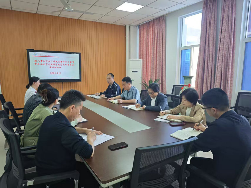 2025年4月10日上午,中共安庆市外国语学校党总支委员会在行政楼二楼会议室举行学习贯彻中央八项规定精神专题读书班开班式。校党总支书记、副校长芦丹主持会议并作专题辅导,校长胡奇林、党总支委员、各支部书记及校领导班子成员参加了此次学习活动。