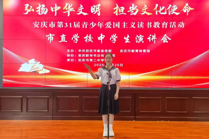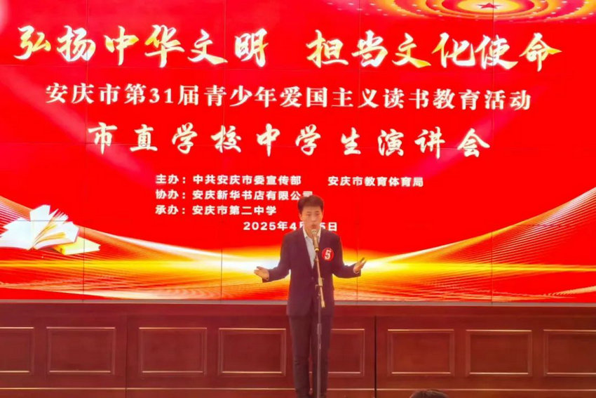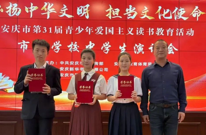 2025年4月25日上午,安庆市第31届青少年爱国主义读书教育活动市直学校中学生演讲比赛隆重举行,我校三名同学参赛并喜获佳绩。