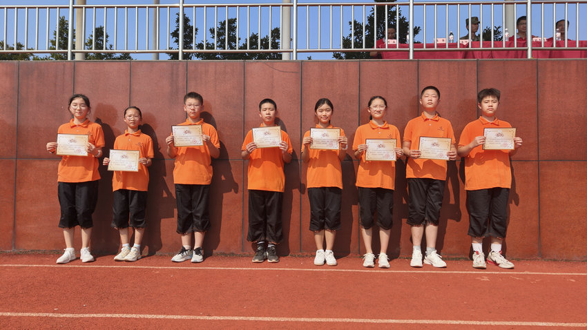 最后校长胡奇林宣布训练结束,各班级合影留念。