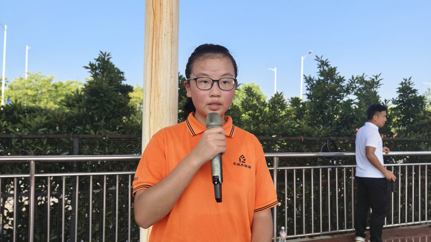 队形队列展示结束后,702班的朱芷昕代表全体同学发言,她感谢教官烈日下的辛苦,感谢老师无时无刻的陪伴,感谢自己挥洒下汗水卓越成长。随后胡主任宣读训练优秀班级表彰决定,各位领导为训练优秀班级颁奖。