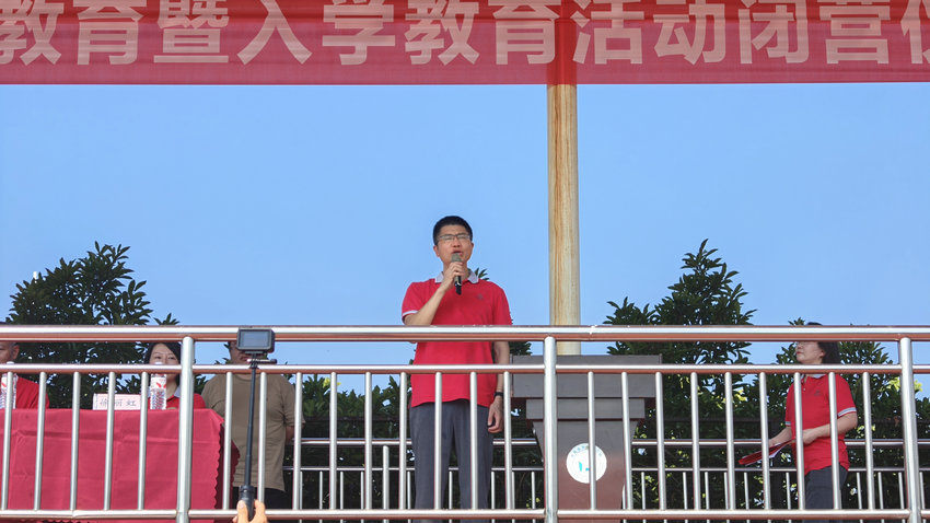 校长助理李萍发言,她看到同学们在训练场上有着这严格的纪律和高昂的斗志,相信在接下来学习生活中同学们能发挥艰苦奋斗的精神,遇到难题决不放过,碰到困难决不低头,做一名不畏困难,勤奋学习的好学生。