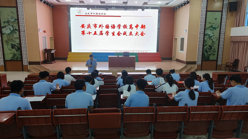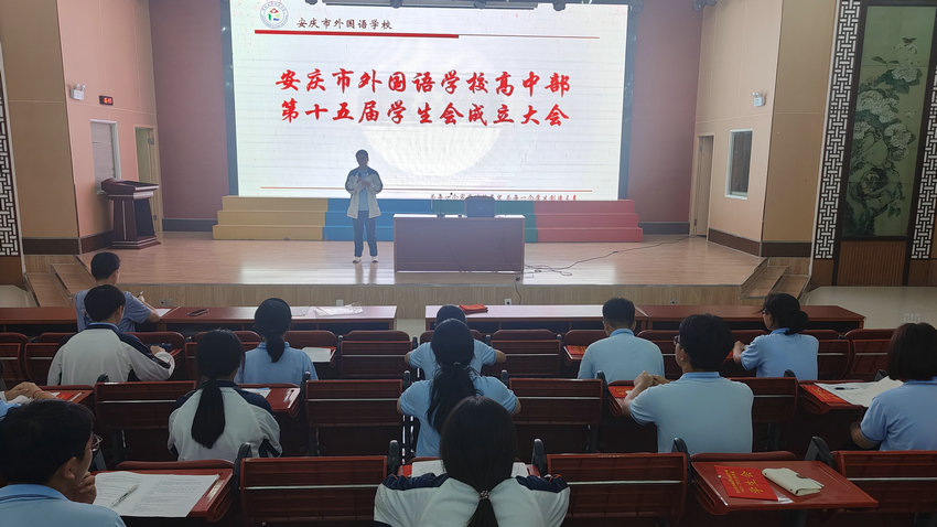 9 月 17 日下午,安庆市外国语学校高中部第 15 届学生会成立大会在校东区大报告厅温情启幕。学部德育分管主任徐海宏主持大会,全体新一届学生会成员齐聚,共同见证这承载青春责任与校园梦想的重要时刻。
