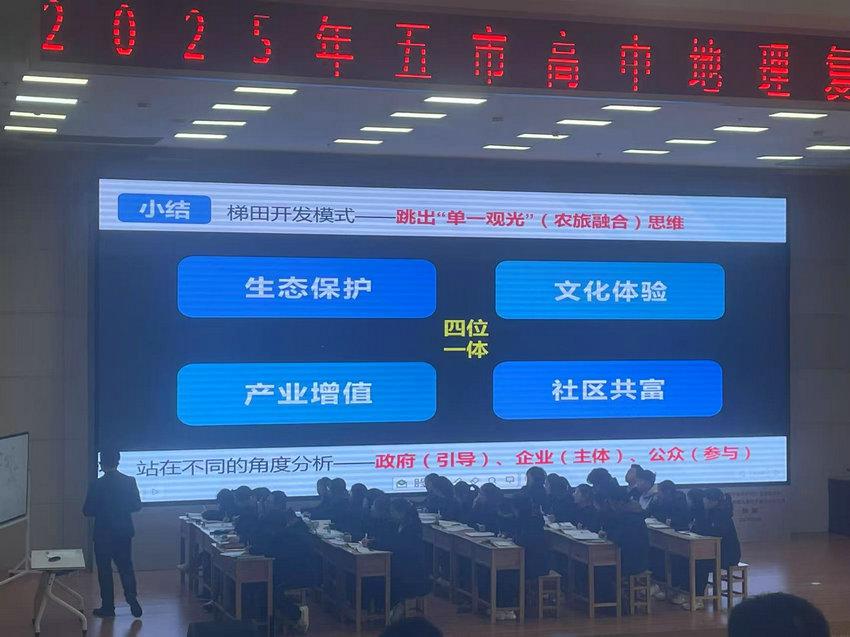 根据会议内容,微专题复习是高三地理二轮复习的重要策略之一。教师应依据高考考点和学生的实际情况,精准提炼微专题。王祥老师以 “梯田” 为课题的公开课,史兵松老师的《指向深度学习的高中地理复习策略研究》的学术报告以及倪普老师的《高考真题的价值意蕴》从育人观,素养观,人才观,资源观几个角度出发,强调教师在教学中应加强对学生获取和解读信息能力的训练,引导学生从情境中提取关键信息,运用所学知识进行分析和解答;培养学生的批判性思维和创新能力,让学生能够灵活应对各种复杂情境。