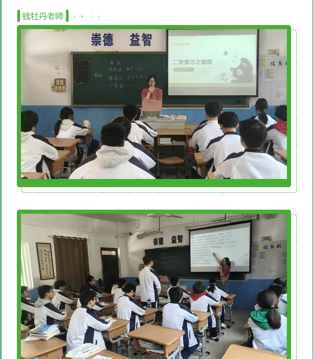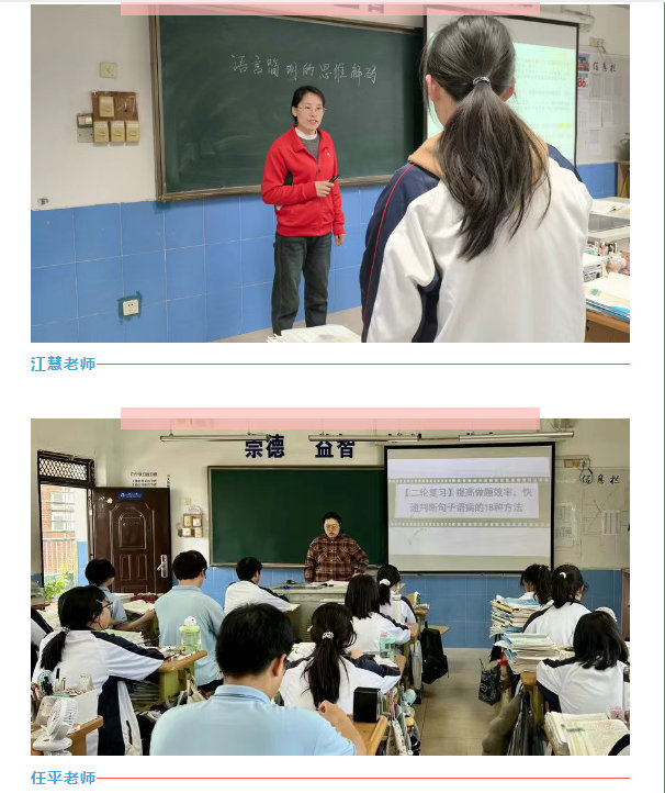 3月13日下午,江慧老师在307班开设高三语文一轮复习公开课。江老师紧扣高考趋势,助学生掌握语言简明题命题形式与答题思维,以三大技法引导探究,课堂互动热烈,获听课老师一致好评。4月10日下午,任平老师展示《提高做题效率,快速判断句子语病》二轮复习公开课,徐海宏副主任及语文组教师参与。任老师以真题导入,回顾语病类型,归纳实用技巧并安排练习巩固。这两堂公开课都为语文复习提供范例,助力师生提升教学与备考水平。