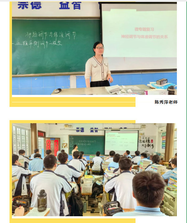 4月17日上午,高三生物组陈秀萍老师开设了《神经调节与体液调节的关系》微专题复习公开课。课上,陈老师先梳理二者的核心概念与特点,借助生动案例,如人体体温调节等,清晰呈现二者相互协作的机制。同时设置互动问答、小组讨论环节,引导学生深入思考。课后老师们交流研讨,此次公开课让学生深化知识理解,也为高三生物复习教学提供了有益借鉴。