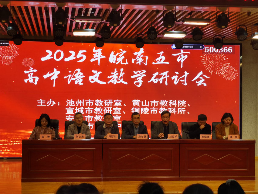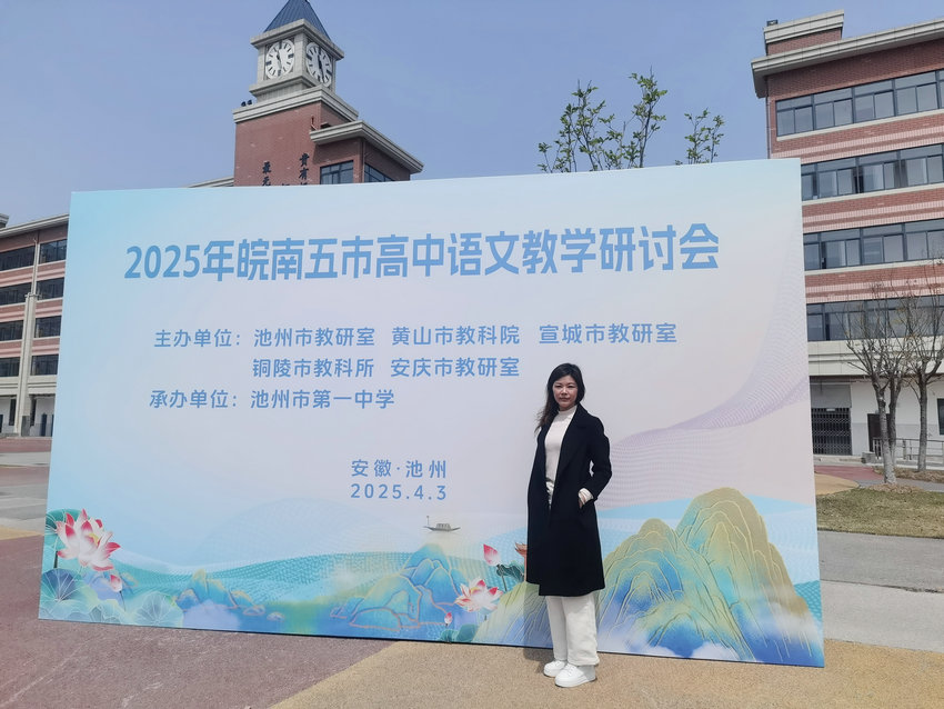 人间四月,芳菲绚烂,在这美好的时节里,2025年皖南五市高中语文教学研讨会于池州市第一中学圆满举行。此次研讨会吸引了众多教育工作者共赴这场知识与智慧交融的盛会,我校也有幸委派教师参与,共同探寻高中语文教学的新路径与高考备考的新策略。