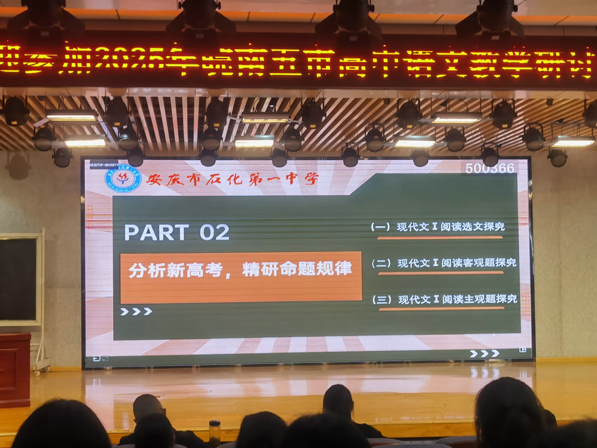 安庆石化一中张锦蓉老师的“遵道而行,会心不远”,则结合课标、历年高考题及安庆二模试题,着重分享了第一篇文本阅读的主客观题备考策略。张老师深入解读命题规律,为老师们提供了极具操作性的备考方法,让大家在文本阅读教学中有了更明确的方向和方法。