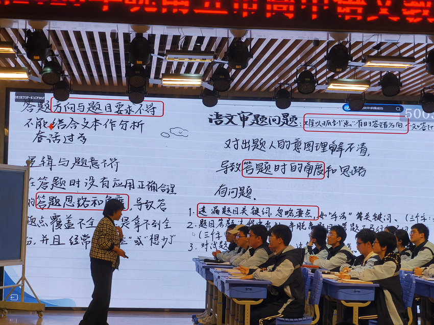 池州市第一中学周丽老师的“又言及意,多维突破”则着眼于审题能力提升。周老师以细腻的教学风格,从词入手,明晰题干关联词句的“读法”,教会学生如何精准捕捉关键信息;进而由言析意,指导学生读全主观题题干,避免遗漏要点;最后由言掘意,深入解读作文题干角度,拓宽学生写作思路。周老师提出的语言拆分、分类和关联方法,如同一把把钥匙,为阅读与写作教学打开了新的大门,让我们意识到在日常教学中培养学生审题能力的有效途径。