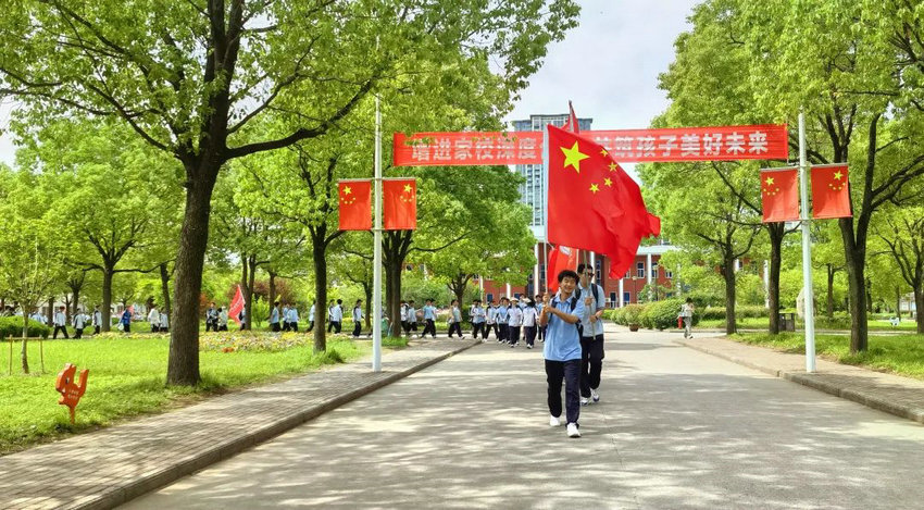 猎猎飘扬的旗帜,承载着使命传承与梦想启航的双重寓意。随着徐校助"出发"令下,全体师生组成的方队如游龙腾空,在烈日下迈出逐梦的坚定步伐。