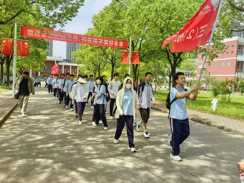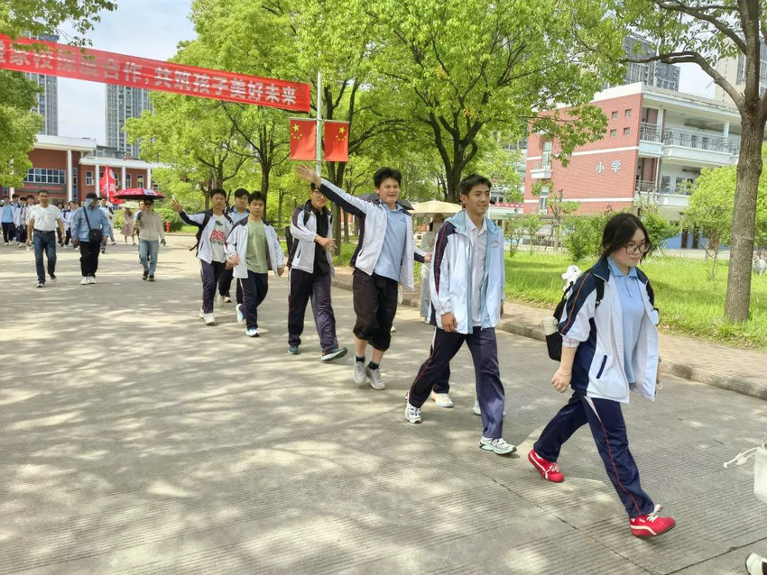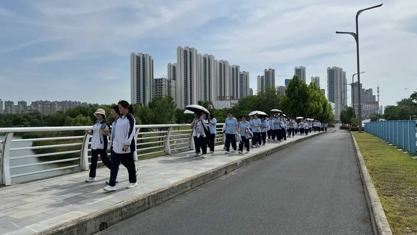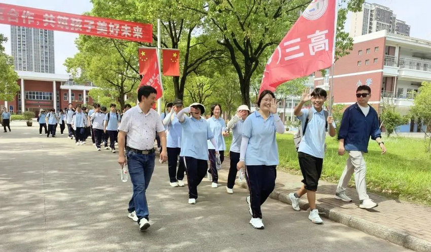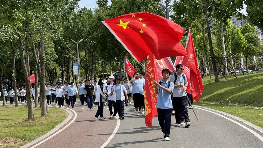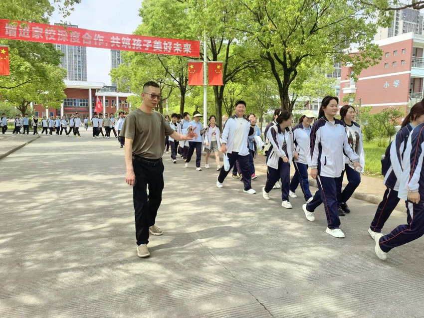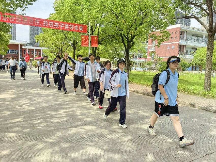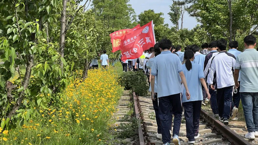 尽管烈日炙烤、双腿酸胀,但同学们始终保持整齐队列,师生们将不服输的倔强与拼搏的热望,深深镌刻进属于高三的鎏金岁月。老师们全程陪护,或为学生递上矿泉水,或用鼓励的话语驱散疲惫,师生同行的画面成为五月里最动人的风景。在这场长达3个多小时的毅行中,没有人掉队,没有人放弃,大家用脚步丈量了坚持的力量,用汗水浇灌了团队的友谊。