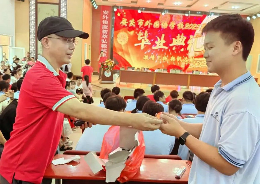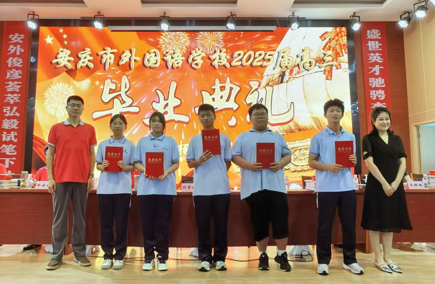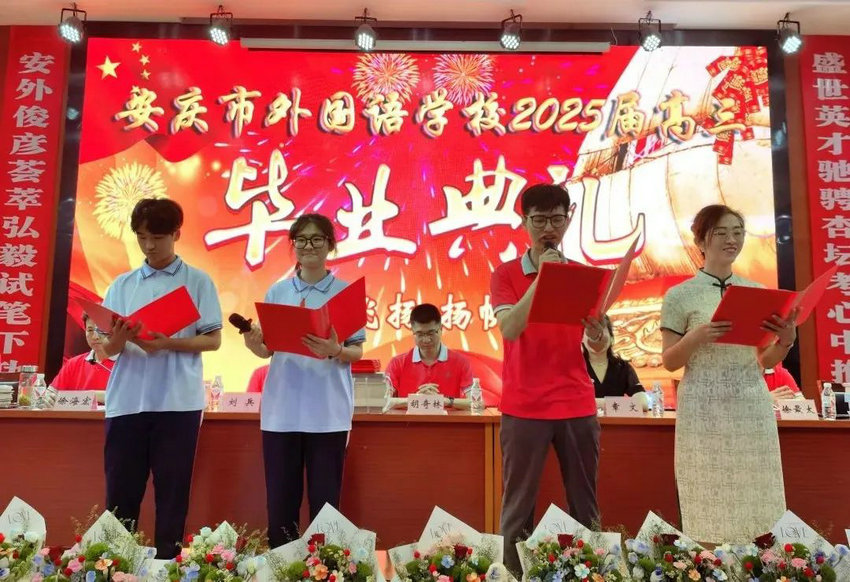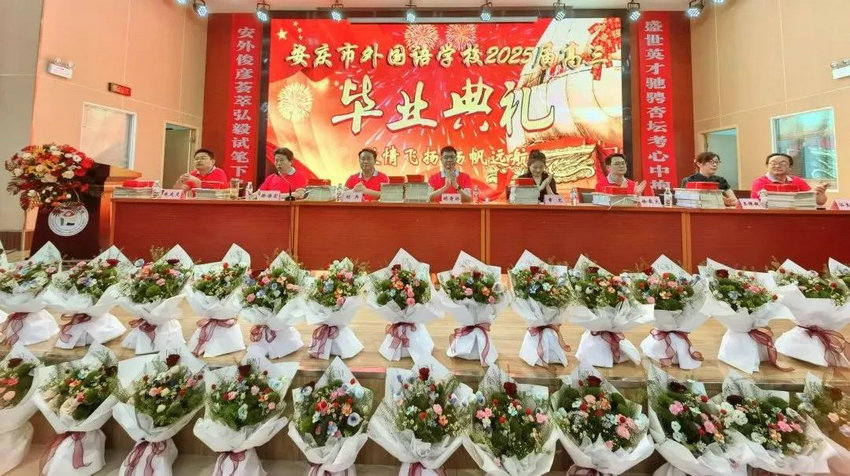 凤凰花开日,金榜题名时。在这个充满希望的季节里,6月6日上午,安庆市外国语学校在校报告厅隆重举行2025届高三毕业典礼,此次典礼不仅是对毕业生们三年辛勤学习的肯定,更是他们迈向人生新阶段的起点,承载了安外师生们的深情厚谊与对未来的美好憧憬。出席会议的领导嘉宾有校长胡奇林、副校长刘兵、校长助理徐最太、高中部副主任徐海宏江生友和朱炎炎,国际部主任王银钗、303班学生家长代表,典礼由徐海宏主任主持。