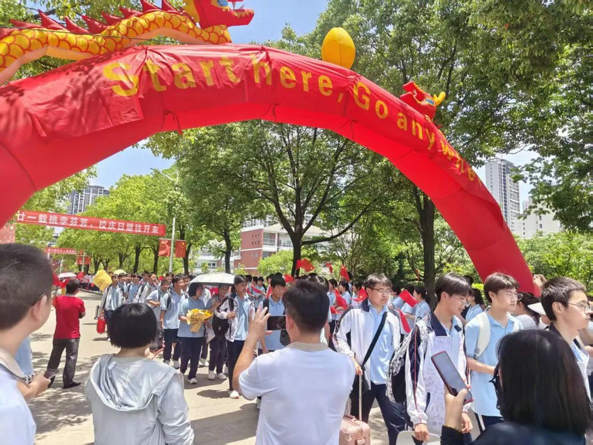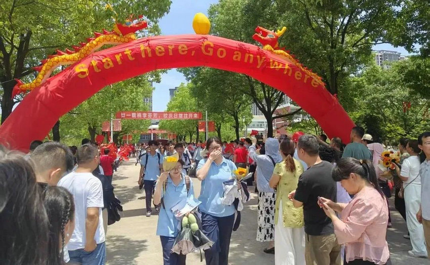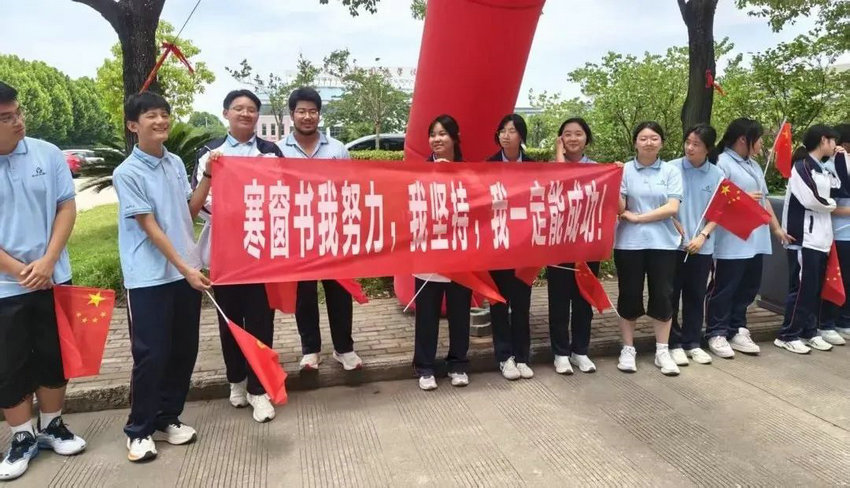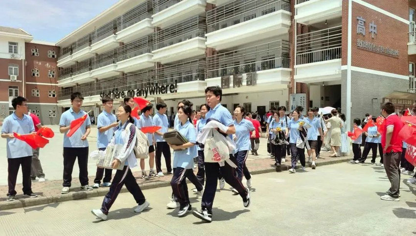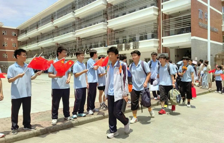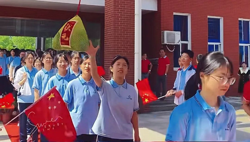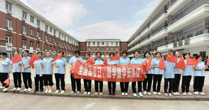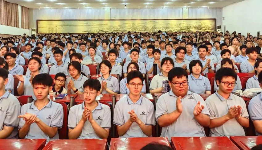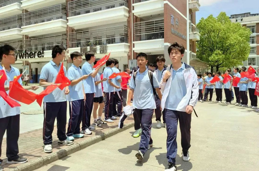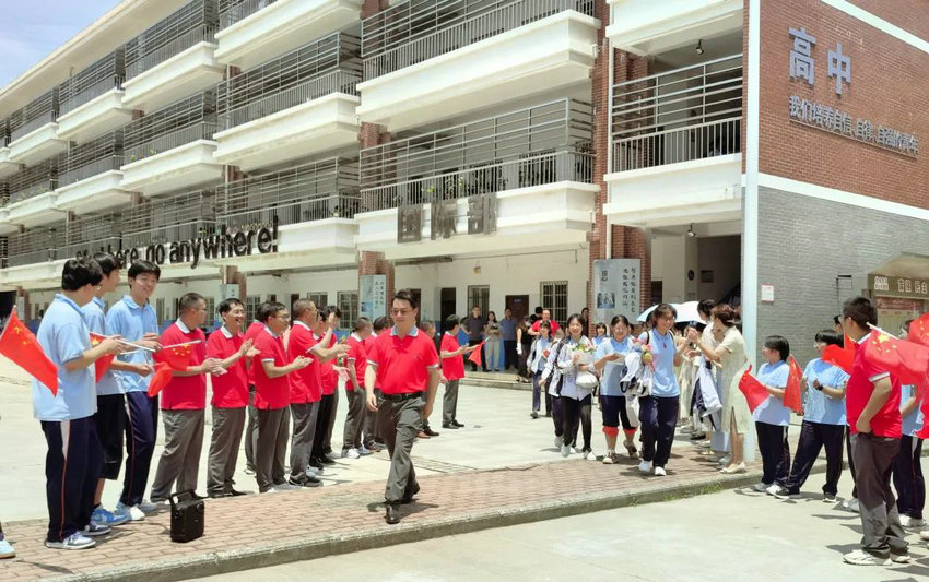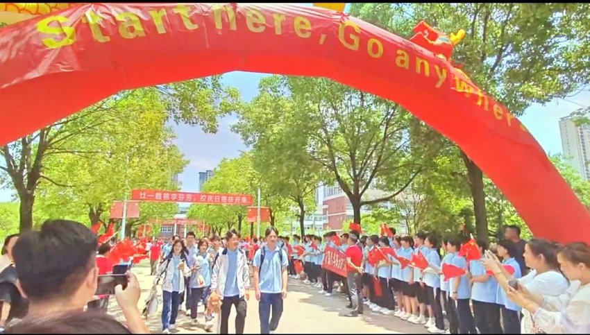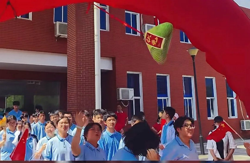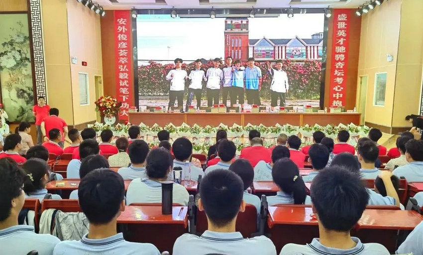 全体高中部师生为高考壮行,为青春喝彩,一起见证高三学子毕业时刻!“勇往直前,金榜题名!拼搏到底,高考必胜!高考必胜!高考必胜!”高一高二学弟学妹的声声祝福口号响彻云霄!