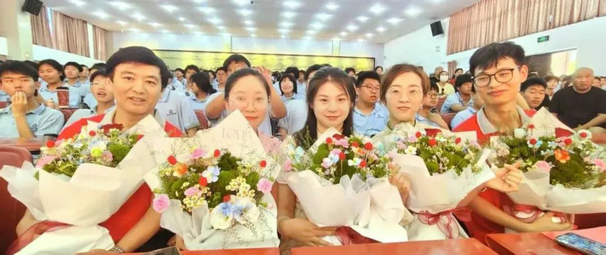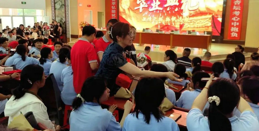 三年里,老师们将全部的爱给了学生,毕业典礼上同学们向敬爱的老师献花,表达他们的感激之情。一时间,会场暖意融融。