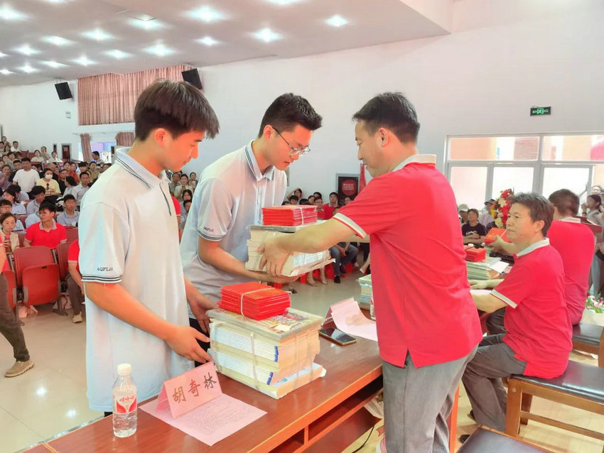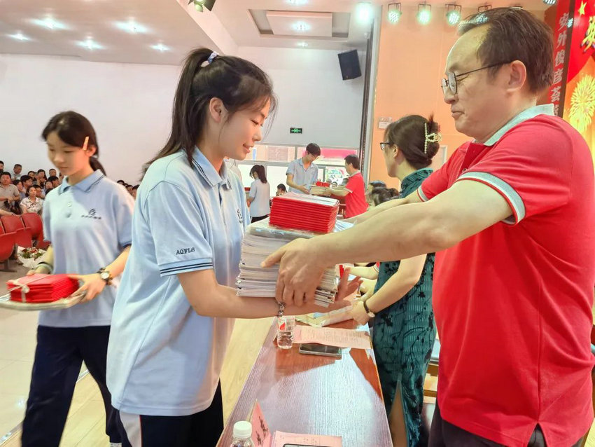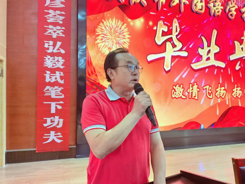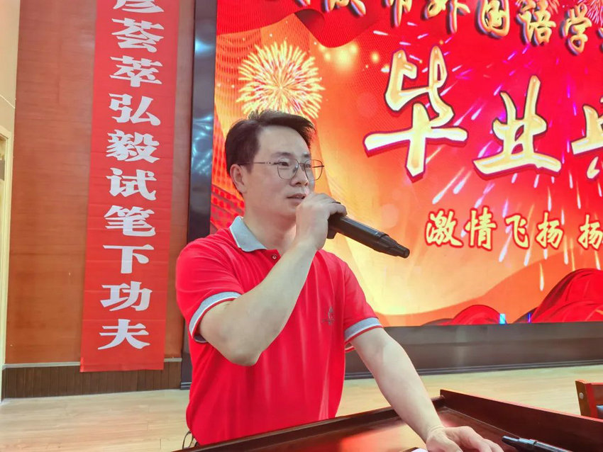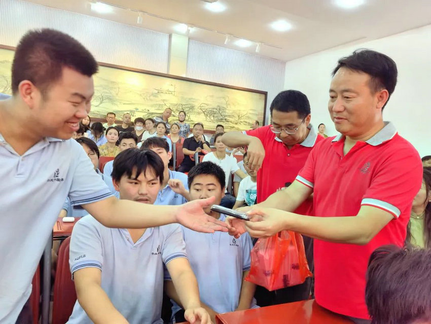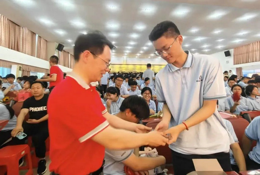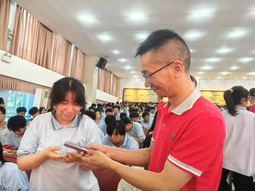 高中部负责领导徐最太校助说,三年来的朝夕相处,我们建立了深厚的友谊,学校见证了你们的成长与进步,同学们也带给学校更多幸福和感动。高中毕业是同学们另一段精彩人生起点,请怀揣着学校盈盈祝福,全力以赴、高考必胜!