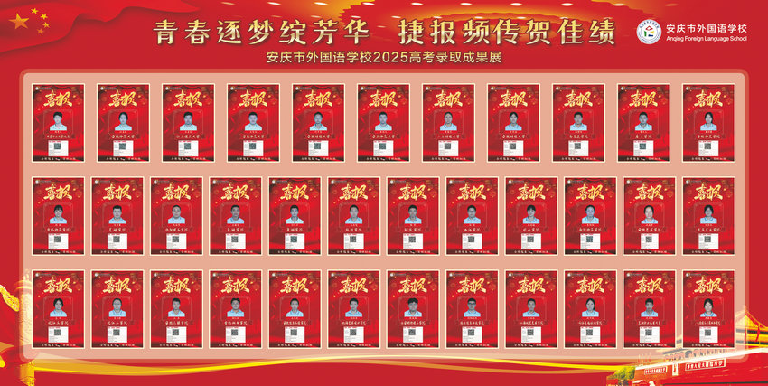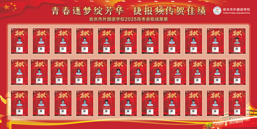 在这个硕果盈枝的季节,安庆市外国语学校2025年高考录取工作已圆满结束,喜报频传、成绩璀璨,向社会、家长和全体师生交出了一份令人瞩目的答卷。