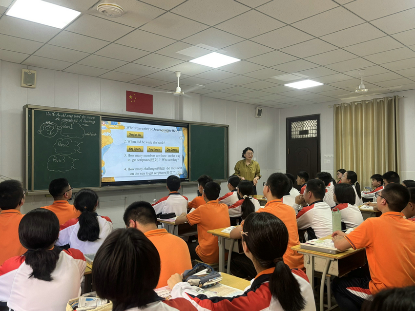 评课环节中,各备课组高度评价教学设计的创新性。七年级特别指出:“《黑神话:悟空》的跨媒介导入兼具时代感和文化深度,名著背景提问为文本解读搭建了认知支架。”九年级组认可分层作业的差异化设计,同时建议优化课堂节奏:“further thinking环节可调整为小组discussion,通过观点碰撞提升思维活跃度,同时缓解时间压力。”