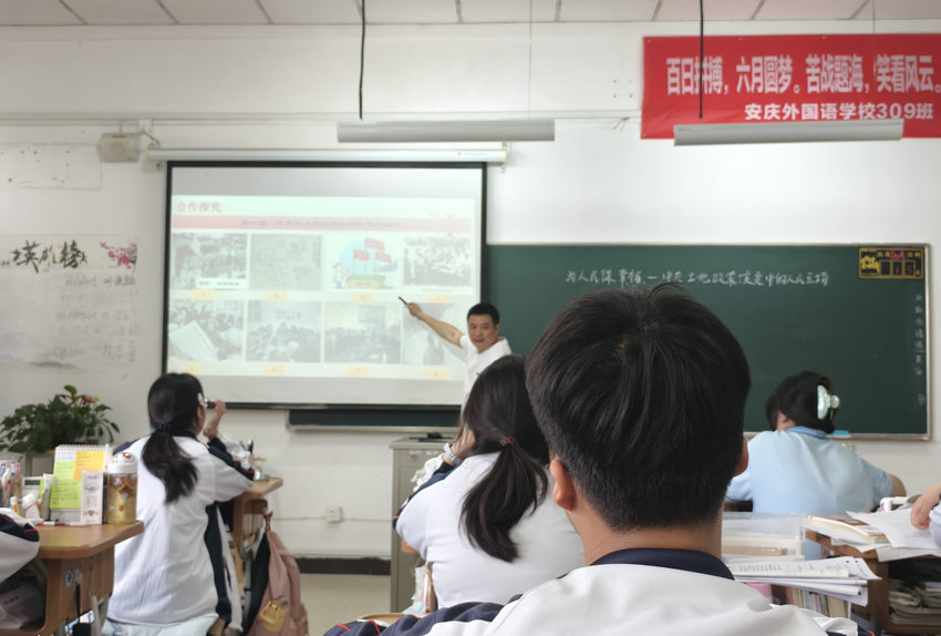 5月23日上午,高中部309班教室开展了一堂以《为人民谋幸福——中共土地政策演变中的人民立场》为主题的高三历史二轮复习公开课。高中部副主任朱炎炎及历史组全体教师参与听课,共同探讨历史教学中对党史脉络与人民立场的深度解读。
