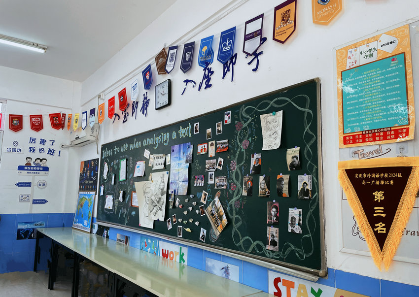 我校出国班近日完成教室文化墙升级改造,210班与110班以差异化设计理念打造沉浸式学习空间,将学科知识、艺术审美与国际视野巧妙融合,为学生营造多元文化浸润的成长环境。