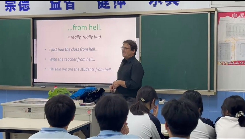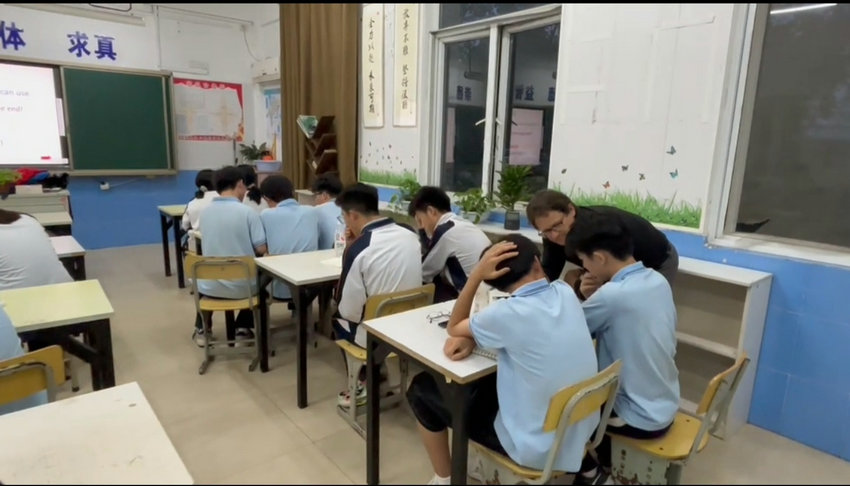 5月15日晚,安外出国班的english club热闹非凡,一场别开生面的主题活动——“轻松应对生活场景突发事件”在高三出国班教室精彩上演。在轻松欢乐的氛围中,同学们跟随外教tim的引导,以幽默诙谐的方式解锁各类突发事件的应对之策。