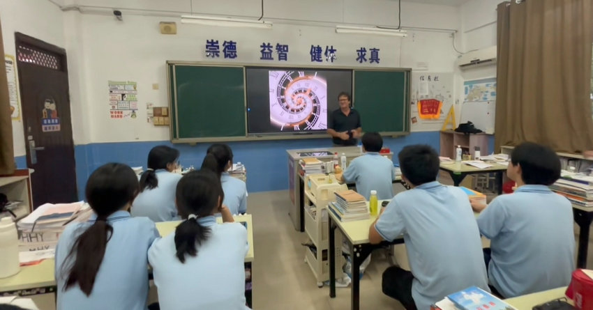 外教tim对同学们的表现给予了高度评价,他不时用幽默风趣的语言引导大家深入思考,还分享了一些自己对时空穿越的独特见解,让同学们受益匪浅。