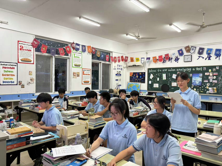 来自高一出国班的jason同学表示:“我想回到唐朝,亲身感受那个时代的繁华盛景。我期待能与李白、杜甫等大诗人交流,领略中国古代诗词的独特魅力。” 高二出国班的roy同学则有着不同的想法:“我对未来更感兴趣。科技正以前所未有的速度发展,我迫切想知道未来会出现哪些颠覆性的发明,人们又将如何在智能高度发达的世界中生活。” 其他班级的英语爱好者们也不甘示弱,积极分享自己的观点。有的同学希望回到文艺复兴时期,见证艺术与科学的蓬勃发展;有的同学畅想未来人类移民火星,开启星际殖民的新纪元。现场讨论氛围十分活跃。