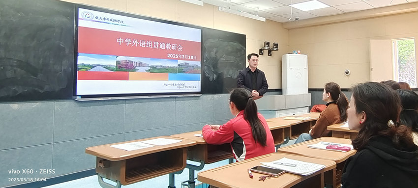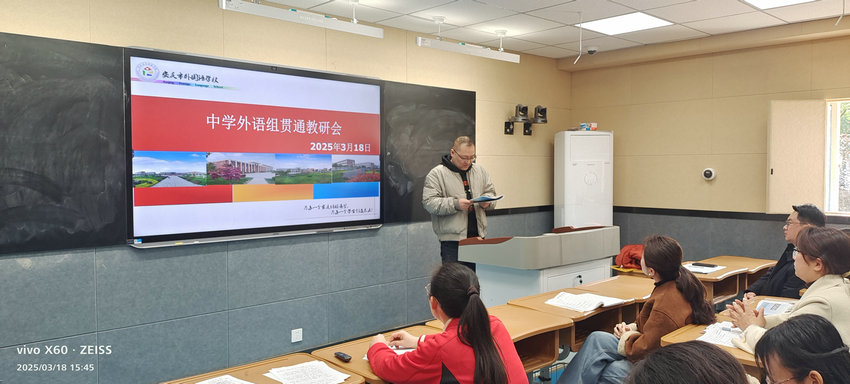 2025年3月18日,初中部英语组全体教师与高中部外语组联合开展了一次贯通教研活动。此次活动旨在加强初高中外语教学的衔接,提升教师的专业素养和教学水平,共同探讨外语教学中的重点与难点。