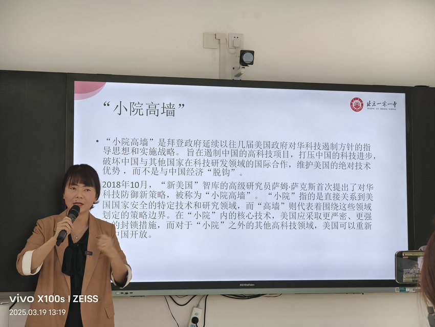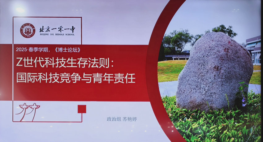 3月19日下午,北京101中学博士论坛在鸿儒学院成功举办,本次论坛以“z时代科技生存法则—国际科技竞争与青年责任”为主题,论坛由北京101中学苏艳婷老师授课。苏老师分享了自己本硕博连读于清华大学、法学博士的求学历程,以自身高考全省前十的经历激励在场师生。课堂上,苏老师以“未来什么职业会被机器人代替”这一问题引发学生思考,自然地引入科技主题。在讲解国际科技竞争格局时,苏老师从历史发展、美国国际政治经济文化霸权以及中美科技投入与成果比较等多个角度,深入剖析了科技竞争的重要性,并介绍了美国拜登时代的“小院高墙”政策以及中国科技发展规划。