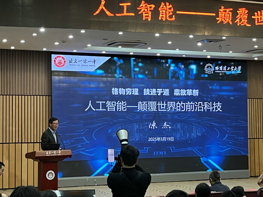 3月19日下午,一场知识的盛宴在101中学热烈开启,我校初中部朱仁革老师、吴翔老师、高中部查显庆、朱炎炎老师满怀期待地参与其中。本次活动由101中学举办,特别邀请到哈尔滨工程大学党委书记陈杰院士带来以“人工智能—颠覆世界的前沿科技”为主题的专家讲座。