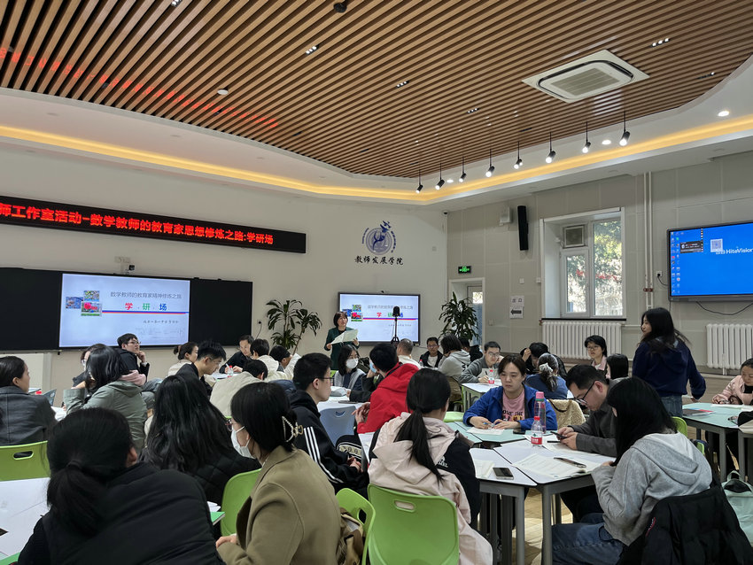 在名师工作室活动《学-研-场:数学教师的教育家精神修炼之路》中,专家与教师们齐聚一堂,共同探讨数学教育的本质与价值。大家围绕如何在日常教学中践行教育家精神,如何培养学生的创新思维和实践能力展开深入交流,思想的火花在碰撞中不断升华。