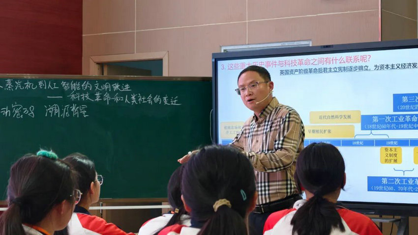 来自我校初中部东区胡森老师带来了《从蒸汽机到人工智能的文明跃进——科技革命与人类社会的变迁》的展示课。