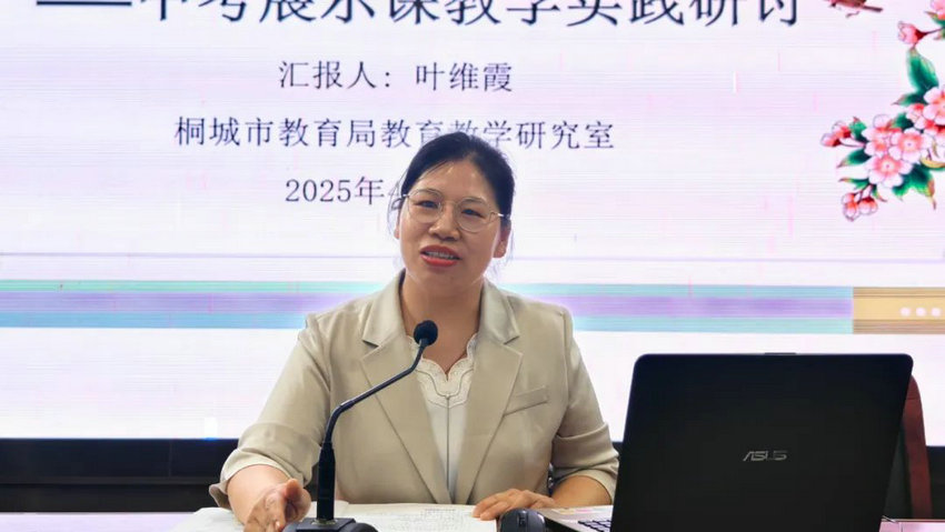 桐城市教研室叶维霞主任作主题为《多维视角下的课堂观察》的点评报告。叶主任从教学模式、教学内容和结构、教学方法和手段、教学效果和反思四个方面进行阐述。她认为两节课均符合跨学科、大概念主题,内容涵盖广泛,课堂逻辑严密,课堂灵活多样且运用数智赋能,充分展示历史学科素养,提升学生思维能力。同时也提出自己的见解和意见以期共同研讨。