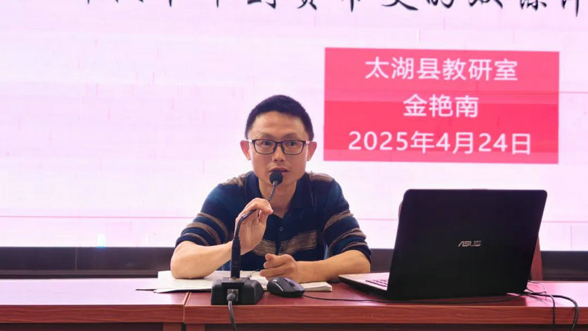太湖县教研室金艳南主任作题为《核心素养下的历史教学实践探索——从科技革命到货币史的双课评析》点评报告。金主任主要从学生主体性与探究式学习、跨学科整合与创新实践等方面与大家进行交流,认为两节展示课均做到以学生为本,其探究式学习锻炼了学生批判性思维和实证能力。金主任还提出一些建议供大家共同思考。
