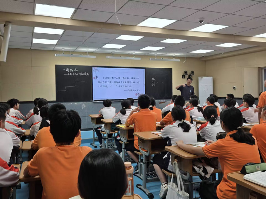 为加强中小学语文教学衔接,提升初三中考复习实效,5月8日下午,我校小学部、初中部语文教研组老师汇聚一堂,联合开展了一次专题研讨活动。初中部黄显丹老师执教了一节主题为“一词传神”的专题复习课。