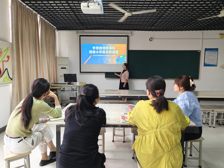 最后,组长章娜对本次活动进行总结,鼓励全体教师以此次分享为契机,在后续教学中大胆尝试创新方法,积极开发本土文化资源。此次分享会不仅实现了市级培训资源的“再消化、再转化”,更凝聚了美术组的教学共识,为安庆市外国语学校美术教学的高质量发展注入了新的活力。