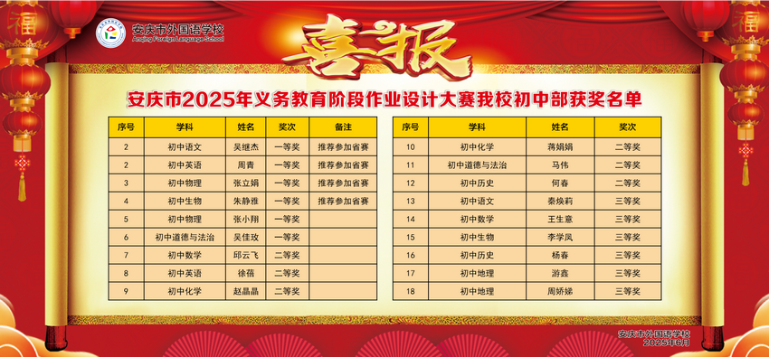 安庆市2025年义务教育阶段作业设计大赛获奖喜报
