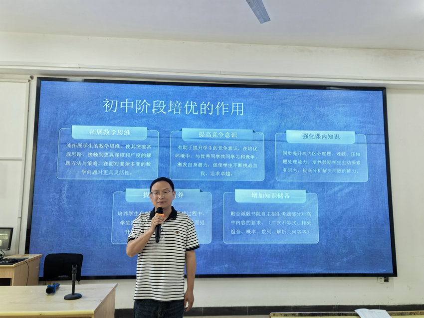 为加强家校协同育人,5月5日下午,安庆市外国语初中部家长学校专题培训会召开,围绕“初中数学学习的重要性”及“初中阶段培优的关键意义”展开深度交流。