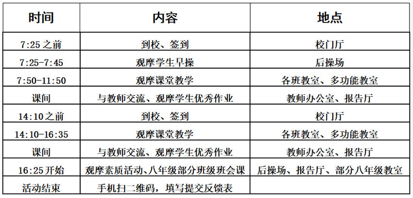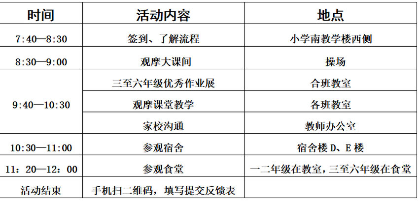 举办家长开放日活动,让家长走进校园,走进课堂,了解学校的教学与管理,旨在加强家校互动,促进家校零距离接触,增强学校、教师、家长之间的沟通,从而更好地实现家校合作,共同促进每一个孩子的健康成长。为便于家长参加2025年家长开放日活动,特制定此活动指南。