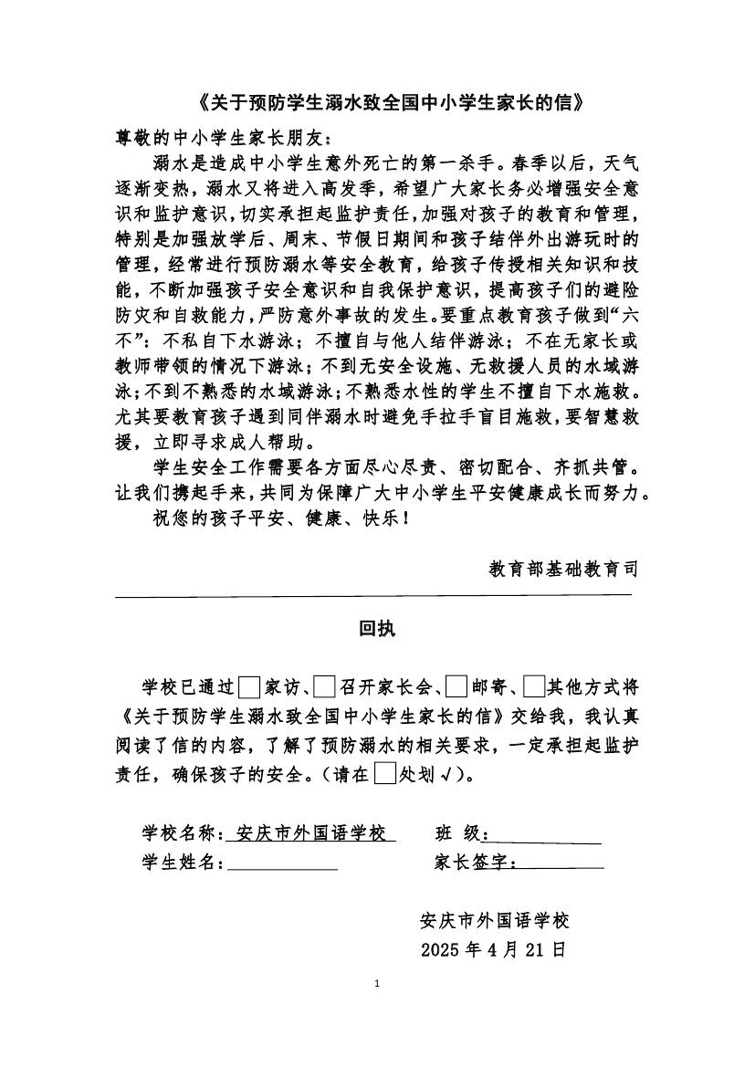 《2025年关于预防学生溺水致全国中小学生家长的信》 -九游会官网登录入口网页