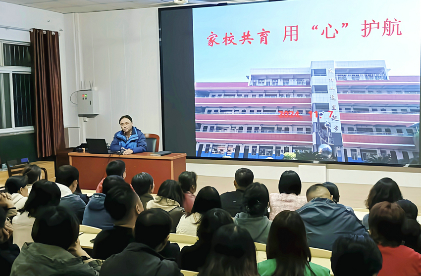 为促进家庭教育和学校教育的协同发展,加强家校之间的交流与合作,我校分别于2024年11月7日、8日和11日三天晚上7:30,在学校一楼报告厅成功举办了“家校共育,用‘心’护航”的专题讲座。本次讲座由校长助理陈培峰主讲,七年级班主任及新生家长积极参与。